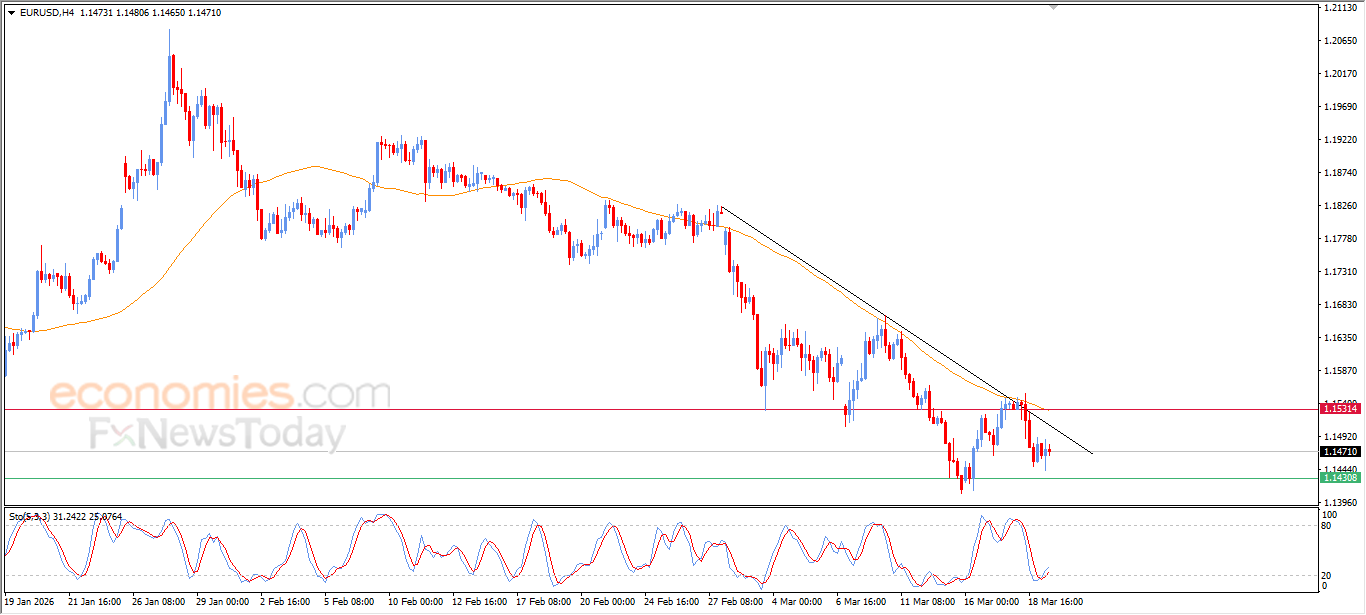 El precio del EURUSD experimentó fluctuaciones en sus últimos niveles intradiarios, en medio de sus intentos por deshacerse de algunas de sus claras condiciones de sobreventa de los indicadores de fuerza relativa, especialmente con la aparición de señales positivas de los mismos, con la continuación de la presión negativa debido a su cotización por debajo de la EMA50, reforzando la estabilidad y el dominio de la principal tendencia bajista a corto plazo, especialmente con su cotización paralela a la línea de tendencia.