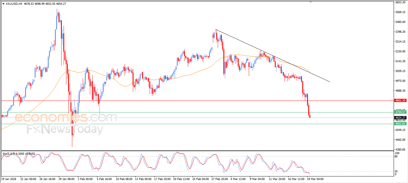 El precio del oro siguió cayendo bruscamente en sus últimos niveles intradiarios, rompiendo el soporte de 4700 dólares, que representa el objetivo esperado en nuestro análisis anterior, en medio del predominio de una fuerte onda bajista menor a corto plazo, con la continuación de la presión negativa debido a su cotización por debajo de la EMA50, intensificando la presión negativa debido a su cotización por debajo de la EMA50, intensificando la presión negativa con la aparición de señales negativas de los indicadores de fuerza relativa, a pesar de alcanzar niveles de sobreventa.