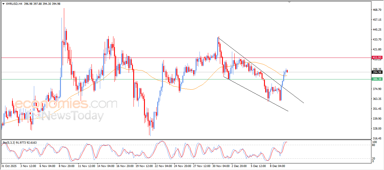 Por lo tanto, esperamos que la criptomoneda suba en sus próximas operaciones intradía, siempre que se mantenga estable por encima de 386,35, apuntando al nivel de resistencia de 411,95.